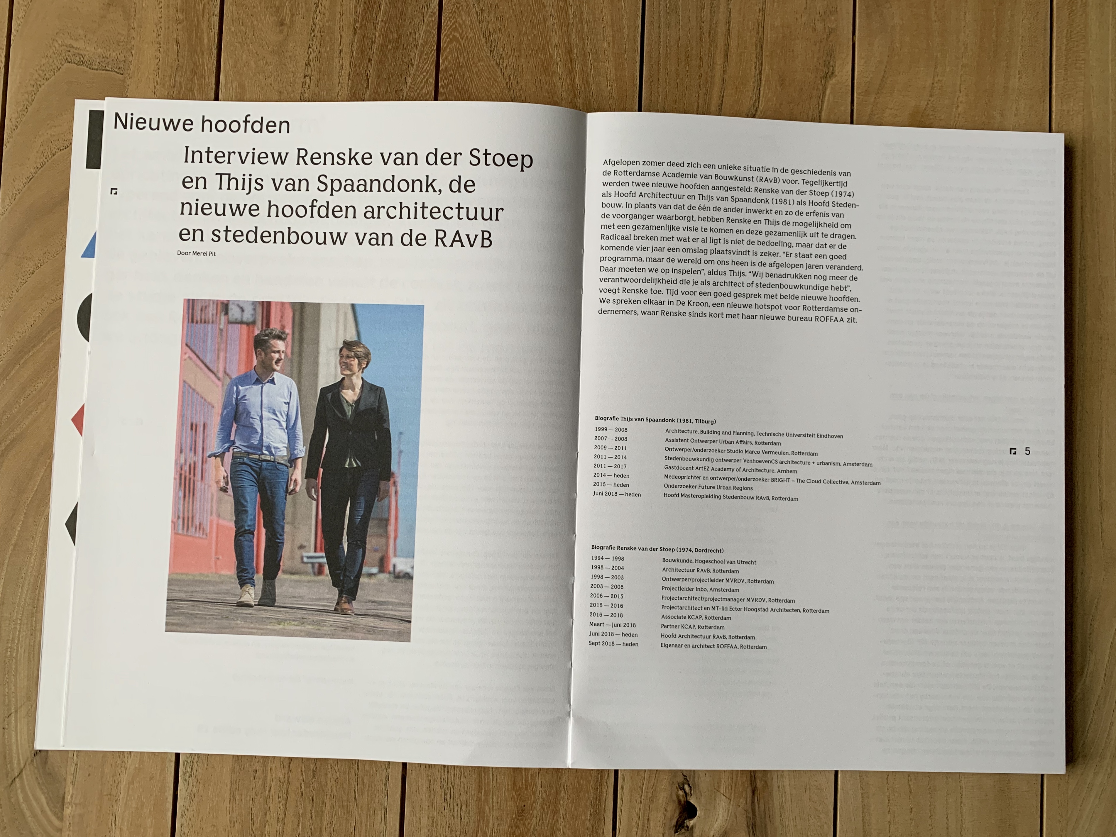 Afgelopen zomer deed zich een unieke situatie in de geschiedenis van de Rotterdamse Academie van Bouwkunst (RAvB) voor. Tegelijkertijd werden twee nieuwe hoofden aangesteld: Renske van der Stoep (1974) als Hoofd Architectuur en Thijs van Spaandonk (1981) als Hoofd Steden-bouw.